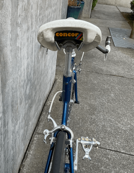 You may notice something odd about the branding. Classics by Columbia — the headtube badge and decals on this frame — was a line of old-fashioned cruisers and utility bikes. They did not make road bikes. They certainly did not make funny bikes. So what’s going on?